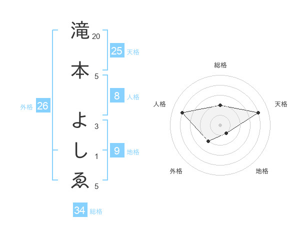 滝本 よしゑさんを姓名の画数から五運を鑑定