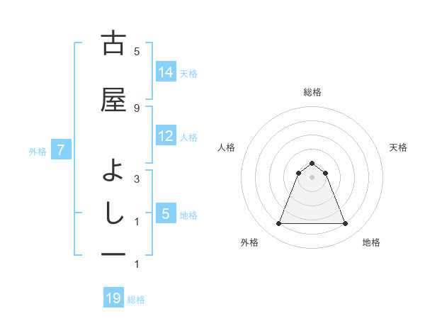 古屋 よし一さんを姓名の画数から五運を鑑定