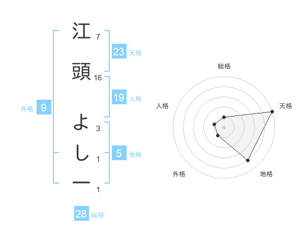 江頭 よし一さんの天格は23画の5点!