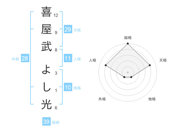 喜屋武 よし光さんを姓名の画数から五運を鑑定