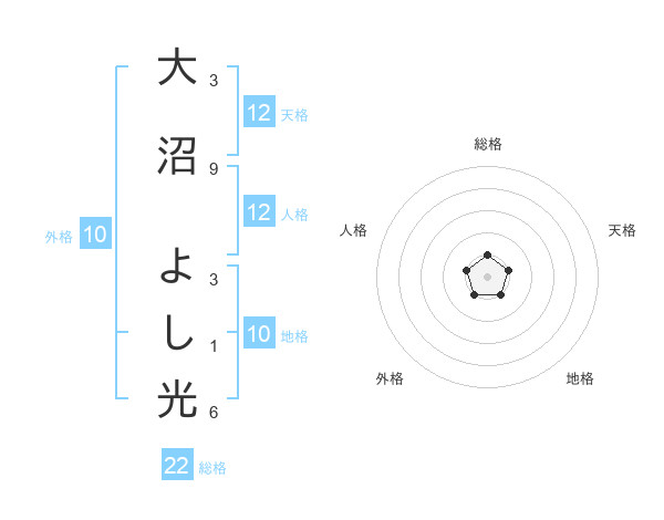 大沼 よし光さんの総格は22画の1点!
