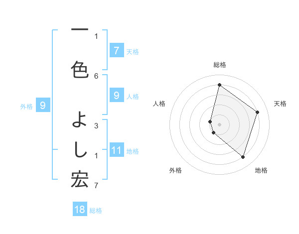 一色 よし宏さんを姓名の画数から五運を鑑定