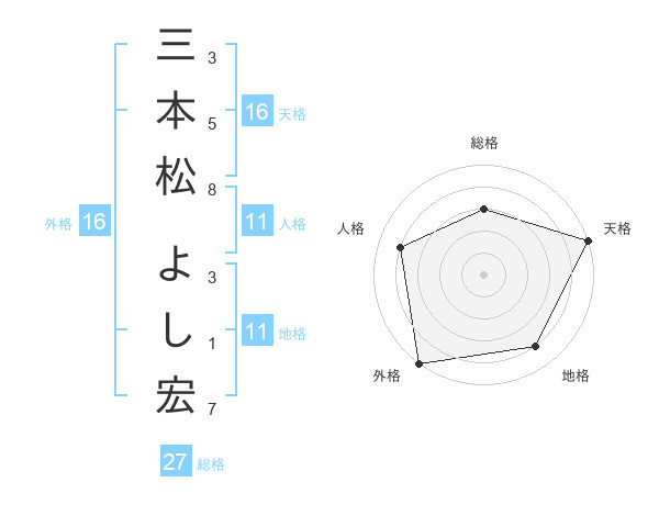 三本松 よし宏さんの外格は16画の5点!
