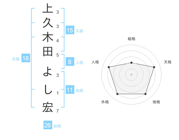 上久木田 よし宏さんの天格は15画の4点