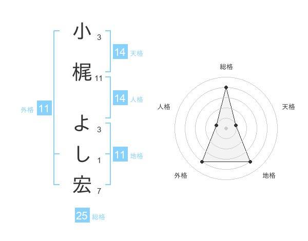 小梶 よし宏さんの外格は11画の4点!