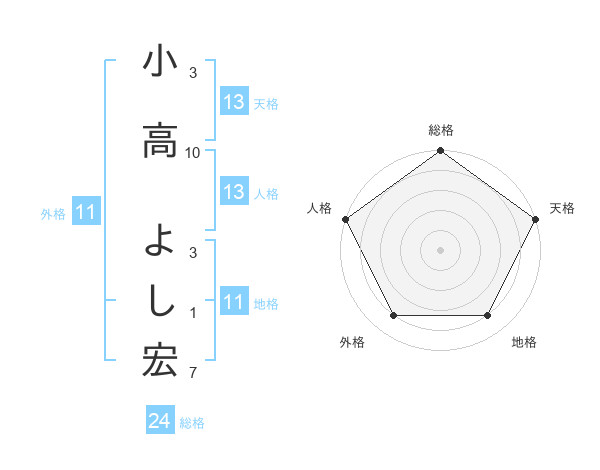 小高 よし宏さんの天格は13画の5点!