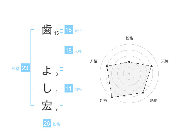 歯 よし宏さんの外格は23画の5点!