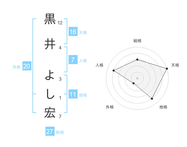 黒井 よし宏さんを姓名の画数から五運を鑑定