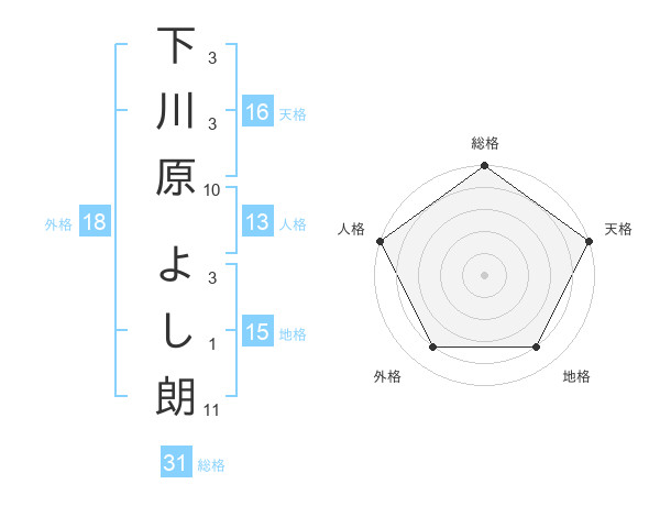 下川原 よし朗さんを姓名の画数から五運を鑑定