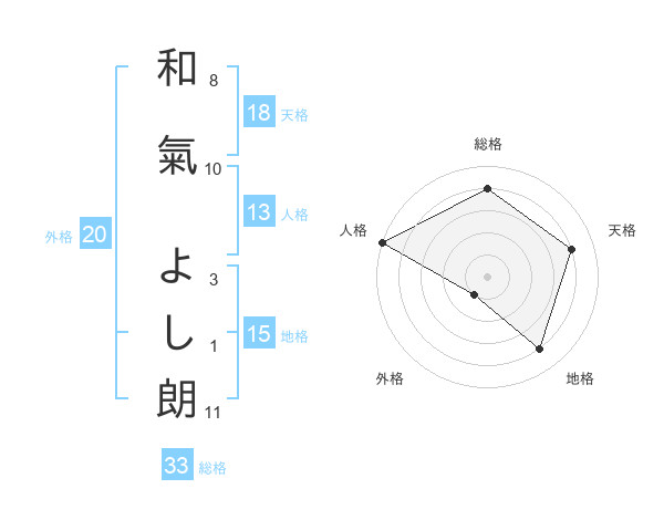 和氣 よし朗さんを姓名の画数から五運を鑑定