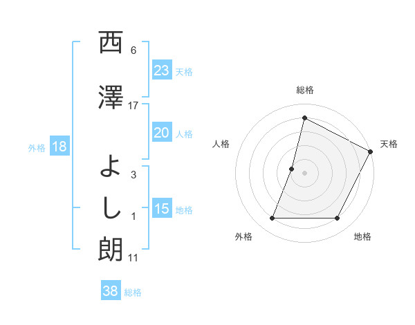 西澤 よし朗さんの天格は23画の5点!