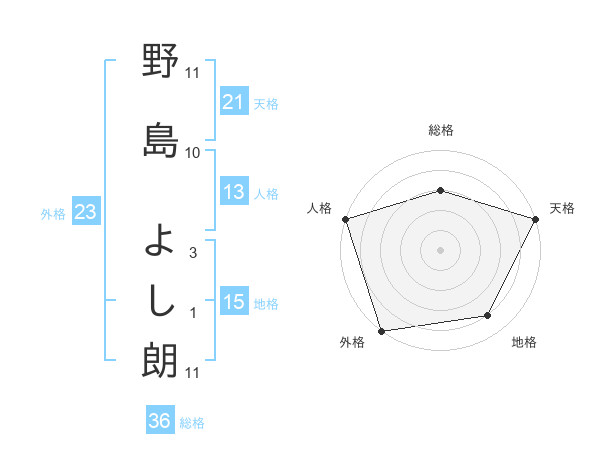 野島 よし朗さんを姓名の画数から五運を鑑定