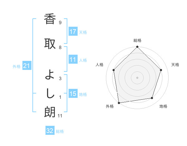 香取 よし朗さんを姓名の画数から五運を鑑定