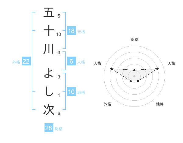 五十川 よし次さんを姓名の画数から五運を鑑定