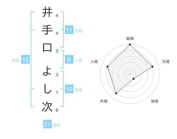 井手口 よし次さんを姓名の画数から五運を鑑定