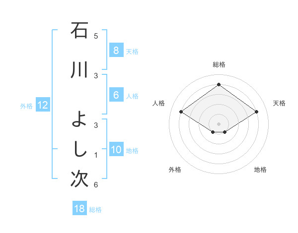 石川 よし次さんの総格は18画の4点!