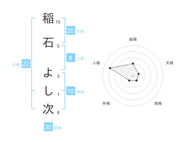 稲石 よし次さんの総格は30画の2点!