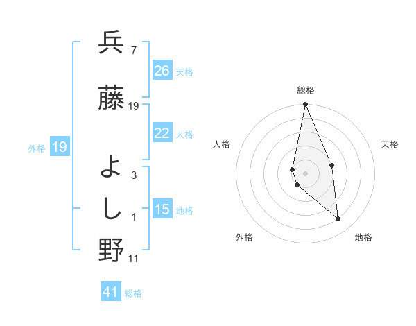 兵藤 よし野さんを姓名の画数から五運を鑑定