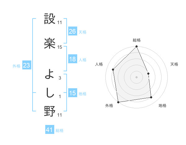 設楽 よし野さんを姓名の画数から五運を鑑定