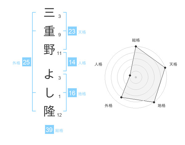 三重野 よし隆さんを姓名の画数から五運を鑑定