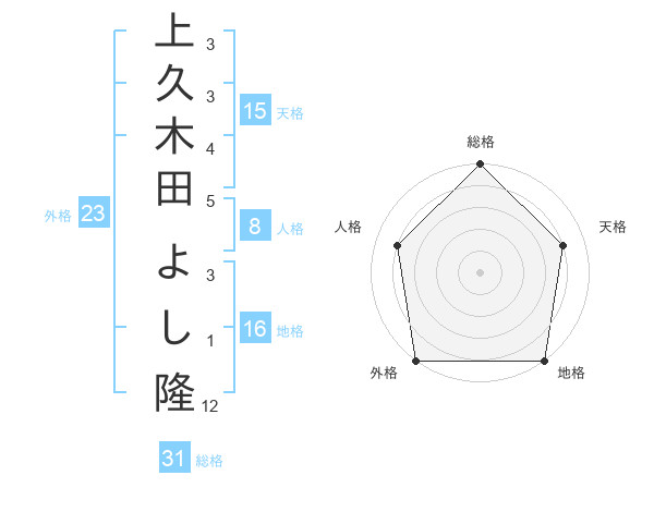 上久木田 よし隆さんを姓名の画数から五運を鑑定