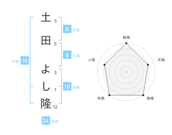 土田 よし隆さんを姓名の画数から五運を鑑定