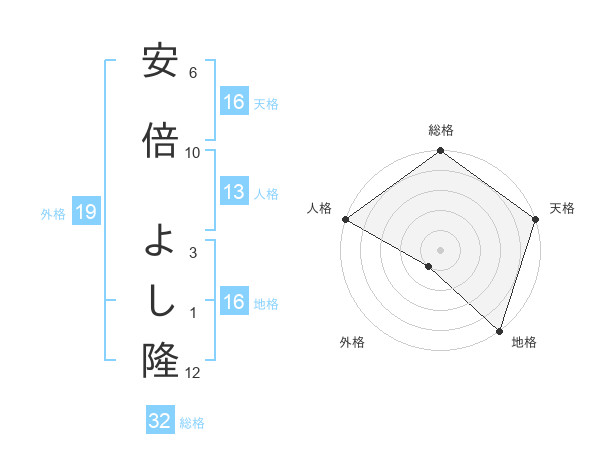 安倍 よし隆さんの天格は16画の5点!