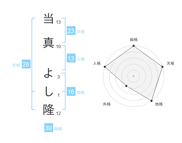当真 よし隆さんを姓名の画数から五運を鑑定