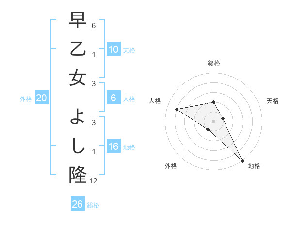 早乙女 よし隆さんを姓名の画数から五運を鑑定