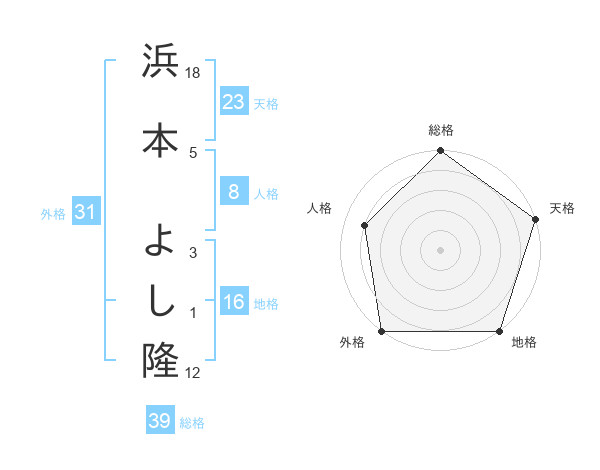浜本 よし隆さんを姓名の画数から五運を鑑定