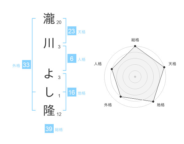 瀧川 よし隆さんの総格は39画の5点!