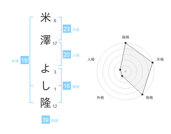 米澤 よし隆さんを姓名の画数から五運を鑑定