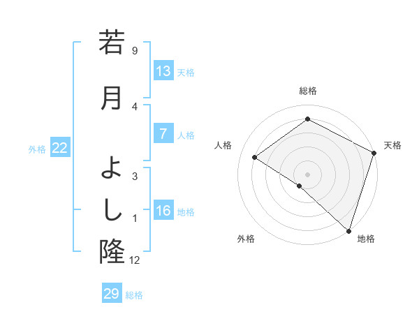 若月 よし隆さんを姓名の画数から五運を鑑定