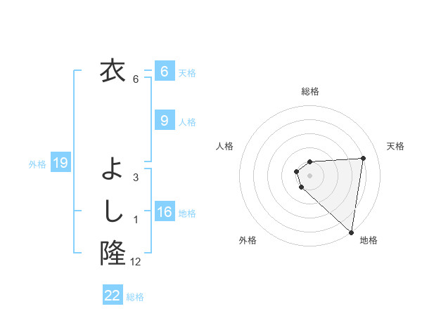 衣 よし隆さんを姓名の画数から五運を鑑定