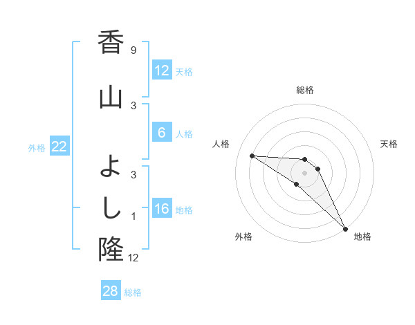香山 よし隆さんを姓名の画数から五運を鑑定