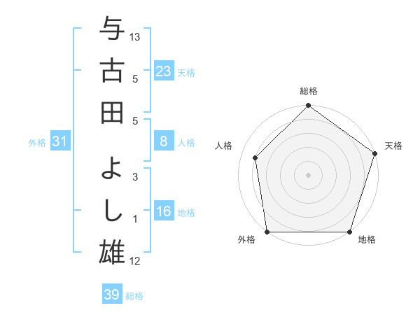 与古田 よし雄さんを姓名の画数から五運を鑑定