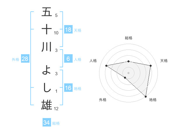 五十川 よし雄さんの地格は16画の5点!