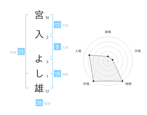 宮入 よし雄さんを姓名の画数から五運を鑑定