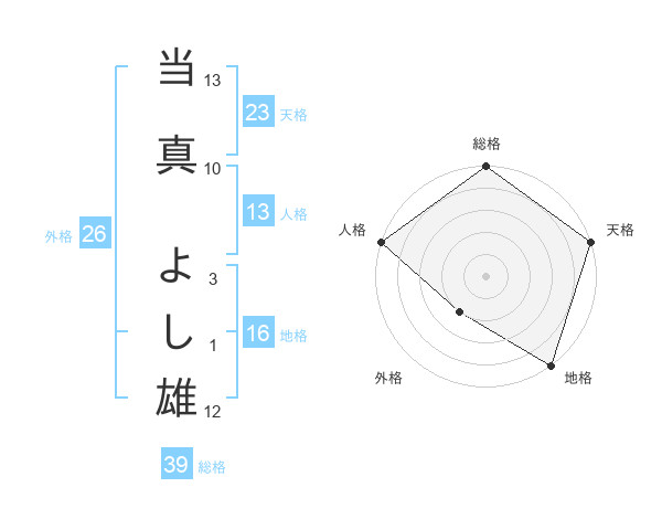 当真 よし雄さんを姓名の画数から五運を鑑定