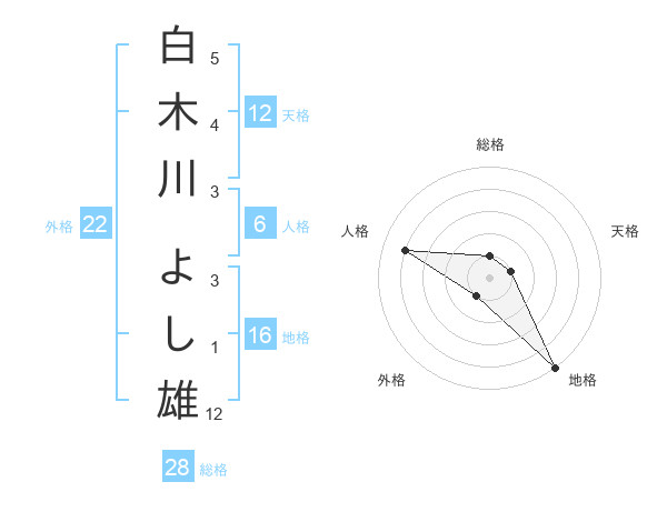 白木川 よし雄さんの天格は12画の1点!