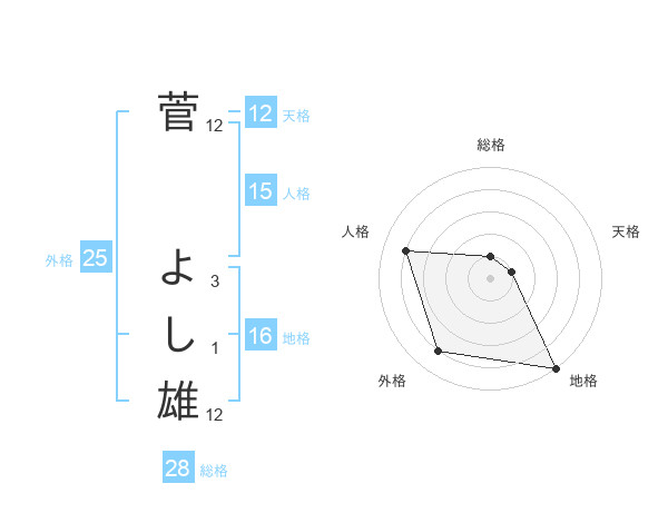 菅 よし雄さんの総格は28画の1点!