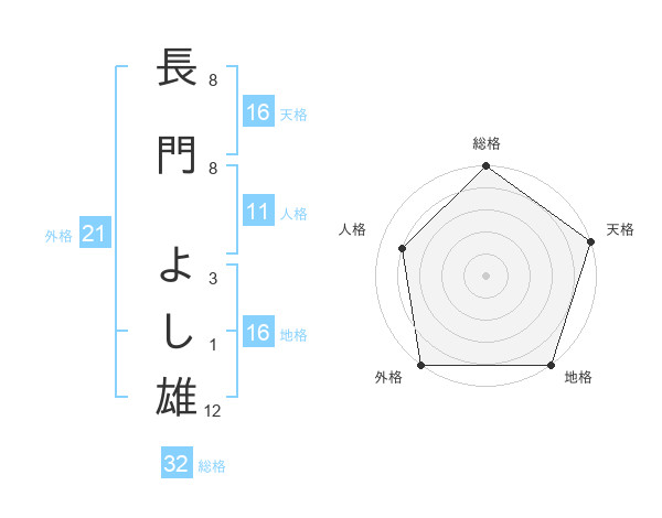 長門 よし雄さんを姓名の画数から五運を鑑定