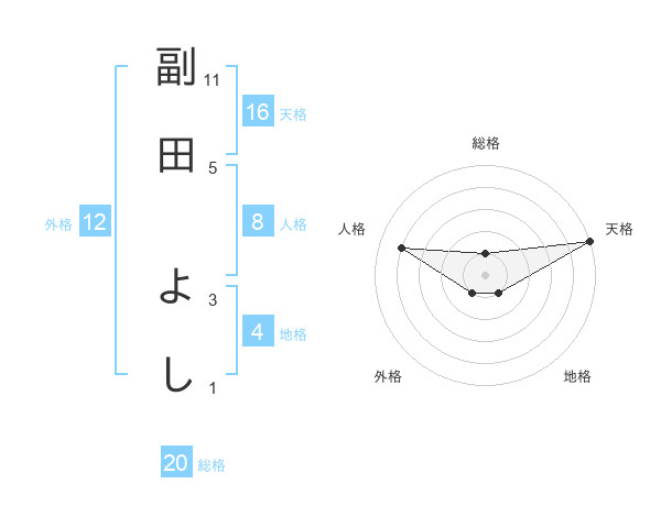 副田 よしさんの天格は16画の5点!