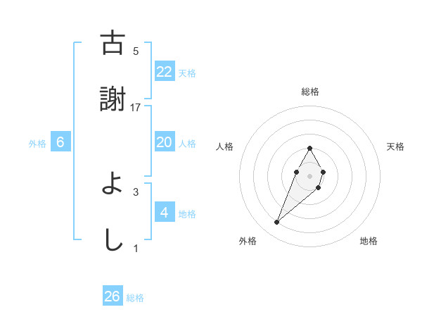 古謝 よしさんの外格は6画の4点!