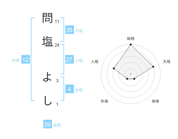 問塩 よしさんの天格は35画の4点!