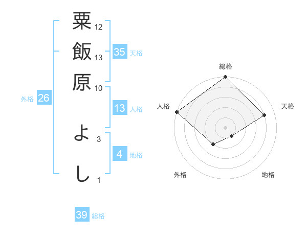 粟飯原 よしさんの総格は39画の5点!