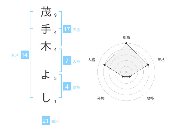 茂手木 よしさんを姓名の画数から五運を鑑定