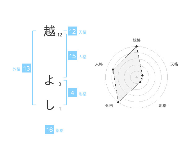 越 よしさんの外格は13画の5点!