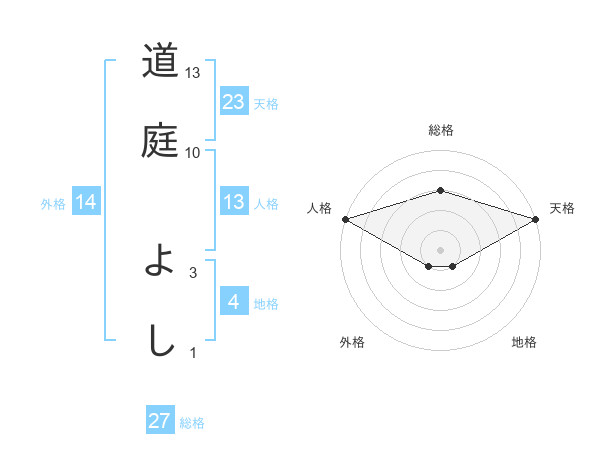 道庭 よしさんの天格は23画の5点!