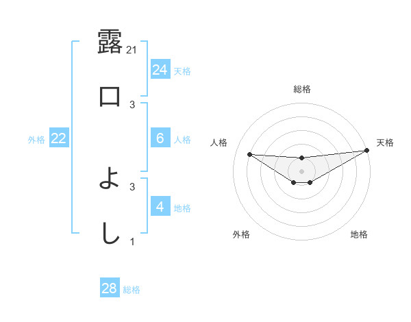 露口 よしさんの天格は24画の5点!